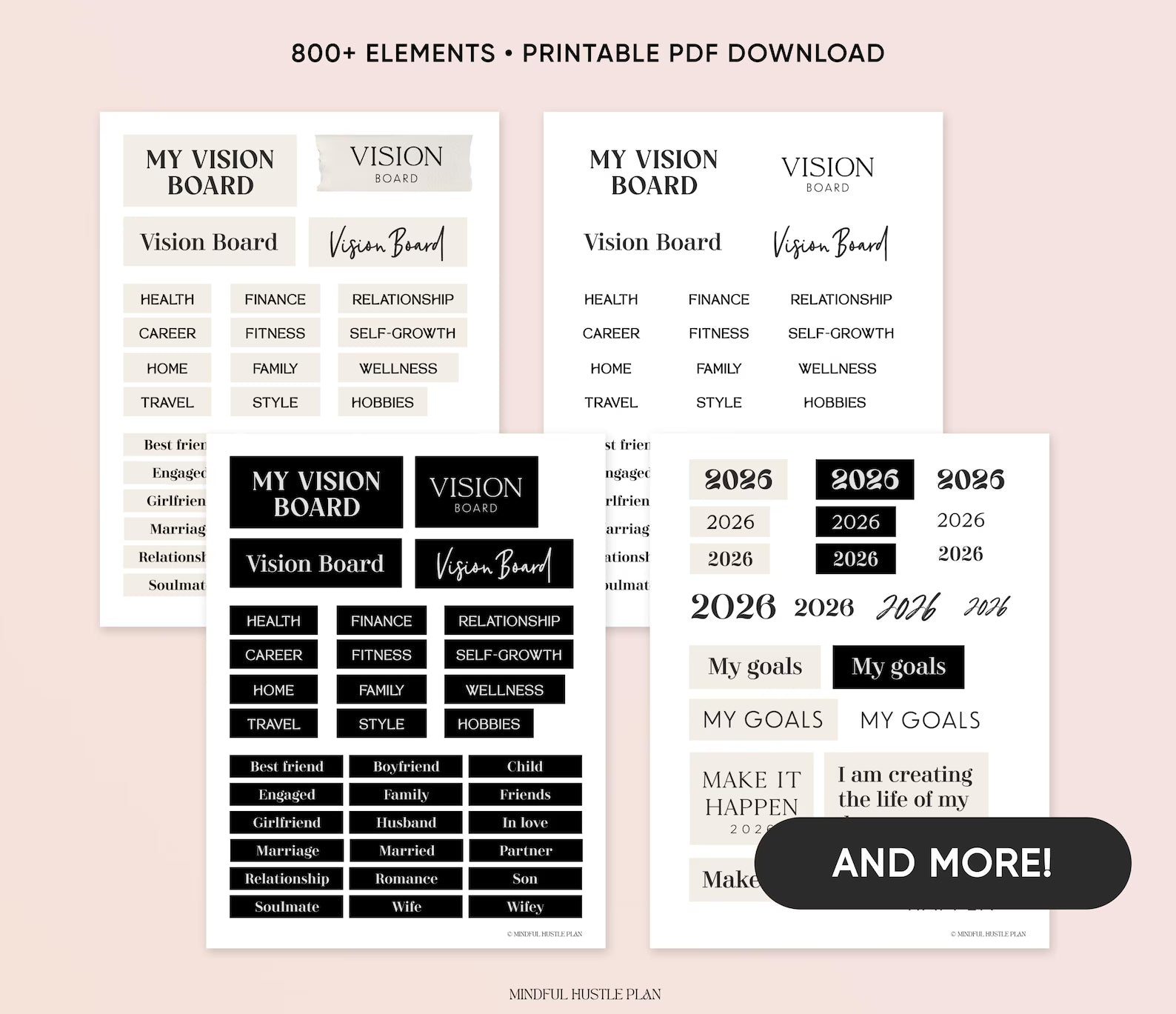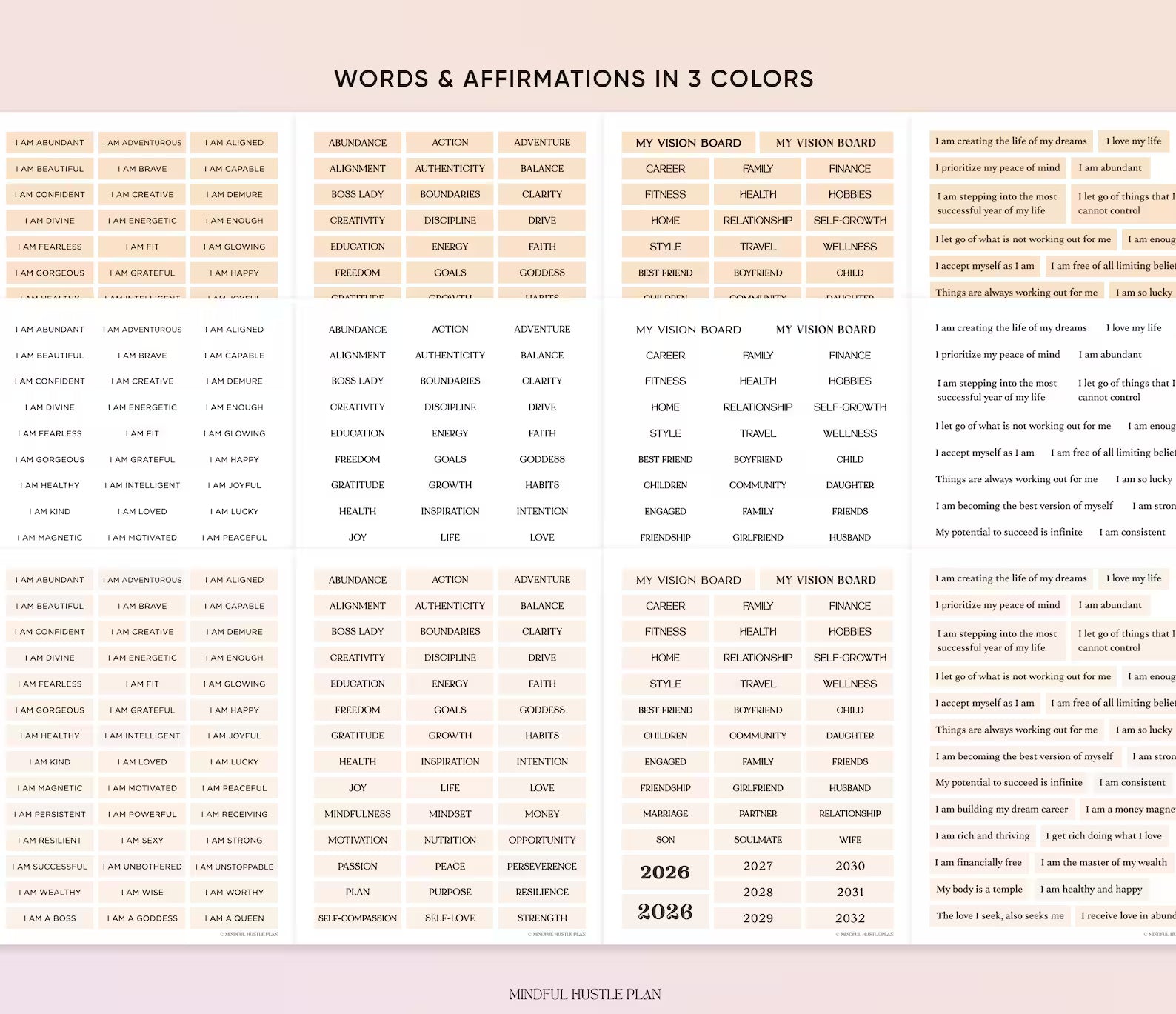 Kit Vision Board 2026, imprimable, modèle de tableau de vision esthétique, pages de l'agenda Manifestation, pour femme, luxe, santé, crème neutre